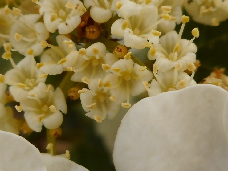 꽃은 5월~6월에 수국(水菊)과 비슷한 모양으로 꽃 이삭 주변에 중성화(무성화 : 크기가 다른 5개의 조각)가 달리고 중앙에 유성화가 핍니다.